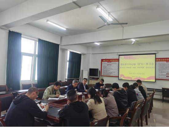 4月30日下午,学院在工科C楼302会议室召开理论学习中心组(扩大)学习会暨党史学习教育第一专题“学史明理”研讨交流会。会议由党委书记刘超主持,党委委员、科级以上干部、各党支部书记、教研室主任参加会议。